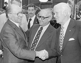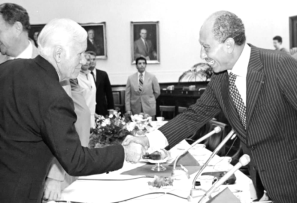 President Carter with the President of Egypt Anwar Sadat and Prime Minister of Israel Menachem Begin