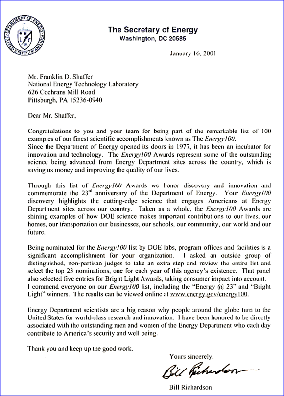 Letter from Secretary of Energy Bill Richardson