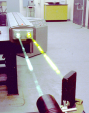 The green (511 nm) and yellow (578 nm) beams of my Atomic Vapor Laser. |