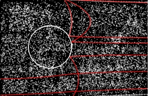 Trajectories identified in a CFD simulation with very high concentrations of added noise particles. |