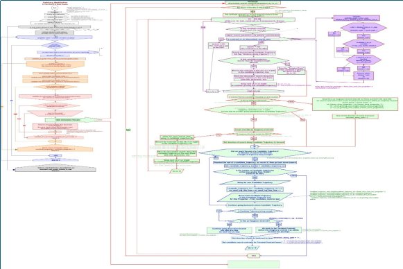 This is the flowchart for the FORTRAN (Formula Translation) code that implements US Patent 8,391,552. It is more than 6000 lines of FORTRAN code. To read the flowchart, I had a 5’ x 4’ print made and hung it on the wall of my office. Click here or on the flowchart to download the entire FORTRAN code. I named my FORTRAN code “Trajectory_Identification.for” The following went into the development of this flowchart and the Trajectory_Identification code: