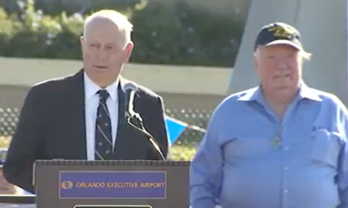 In the photo below, Joe Kittinger introduces Captain Black at the dedication of the Joe Kittinger Memorial in Orlando.