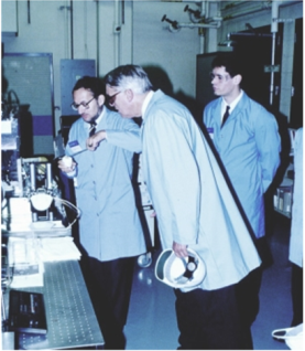 Because Atomic Vapor Lasers (copper-vapor lasers) are a technology used to develop nuclear weapons using the Atomic Vapor Isotope Separation (AVLIS) process, and because mine was built by engineers who built them for Los Alamos, my procurement of an AVL had to be approved by the Fifth Secretary of Energy John S. Herrington. In 1992, the Sixth Secretary of Energy Four Star Admiral James D. Watkins visited my lab to see my work with the Atomic Vapor Laser. |